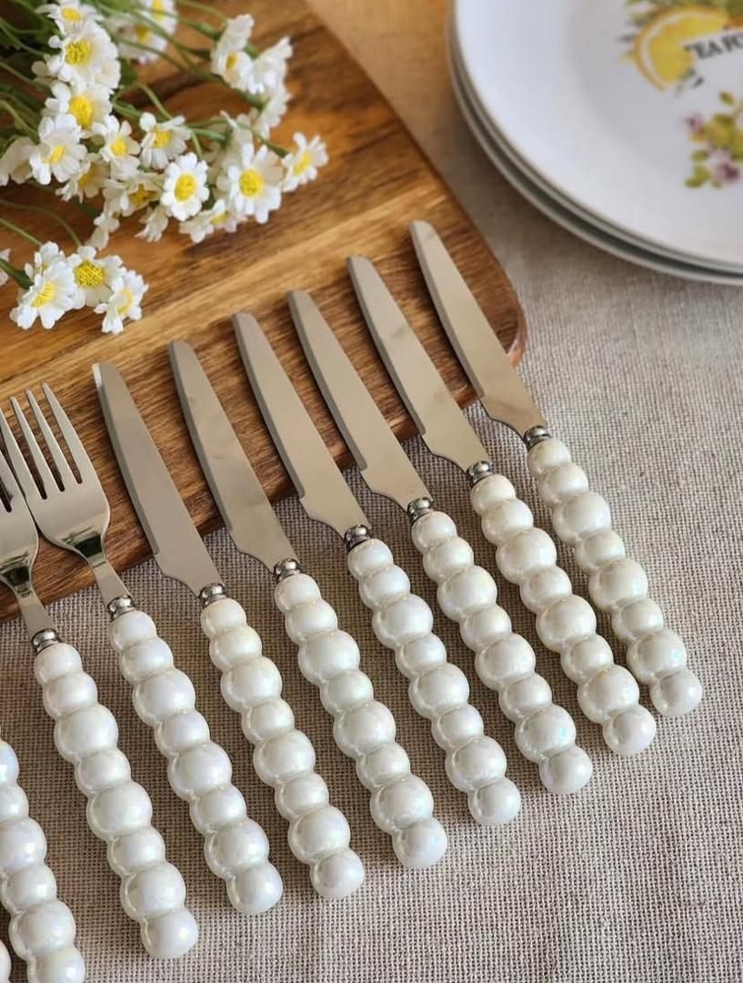 ست کاردو چنگال دسته مرواریدی ۶ تایی