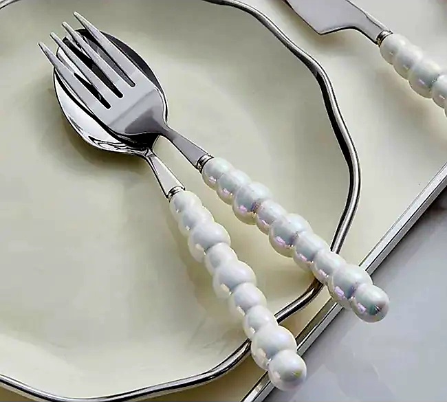 ست قاشق و چنگال دسته مرواریدی ۶تایی